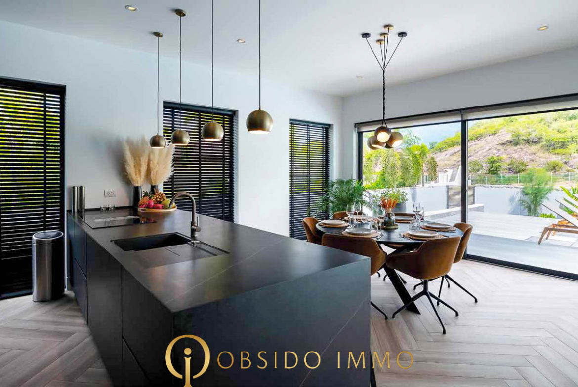 La villa est livrée entièrement meublée et décorée avec des matériaux soigneusement sélectionnés, dans une esthétique contemporaine, sobre et chaleureuse. Les grandes baies vitrées renforcent la connexion entre les espaces de vie et les terrasses extérieures, créant une atmosphère très agréable au quotidien.