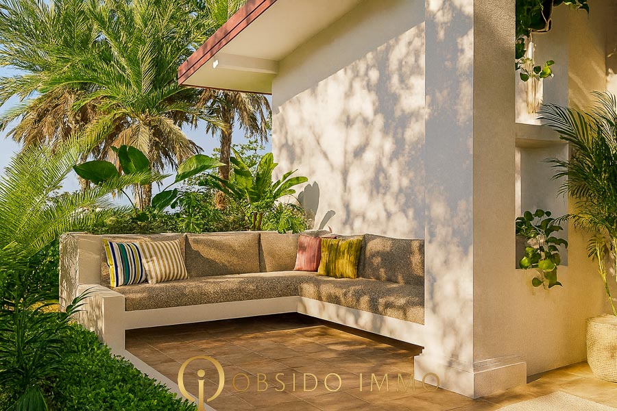 L’objectif est clair : préserver le caractère naturel du site tout en l’élevant aux standards du confort moderne et durable. Les villas existantes sont intégralement repensées – seules les structures, solides et éprouvées depuis plus de dix ans, sont conservées. Tout le reste est neuf : aménagements intérieurs, équipements techniques, finitions, jardins et piscines.