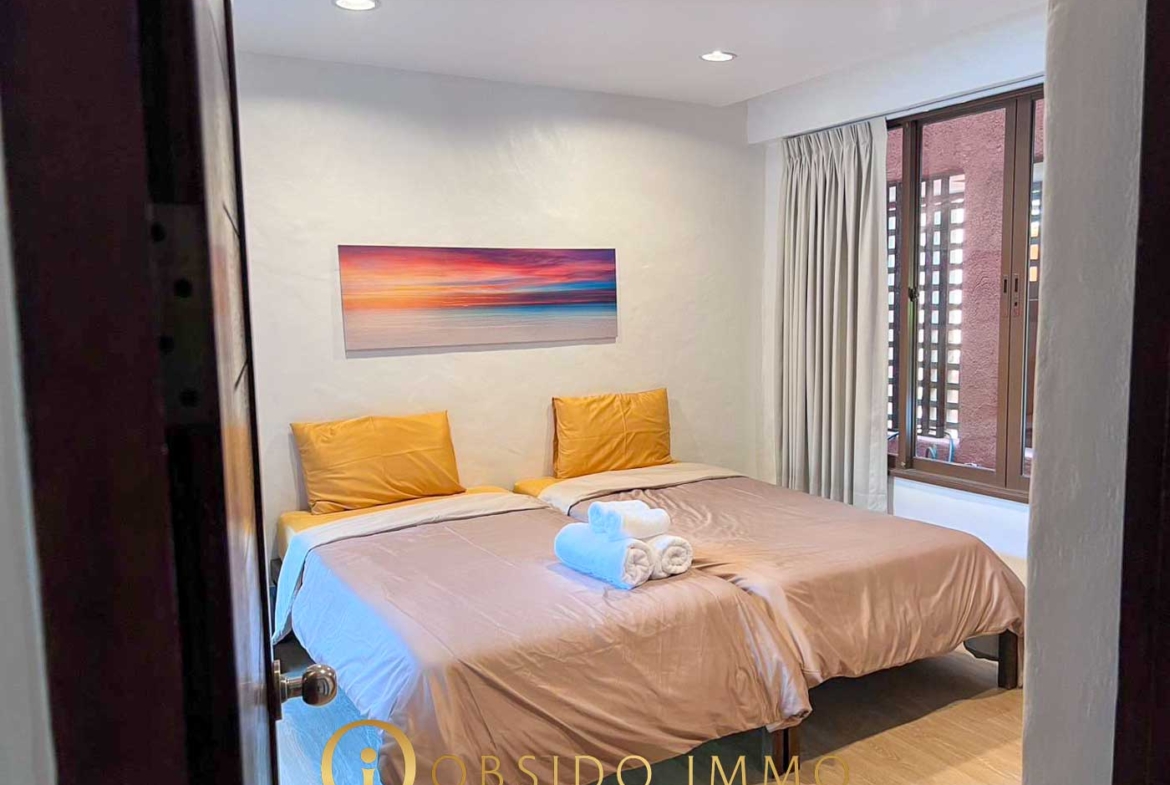 Situé dans la résidence Las Tortugas Hua Hin, cet appartement 2 chambres bénéficie d’un emplacement exceptionnel dans le secteur paisible de Khao Tao, avec accès direct à la plage depuis le condominium.
