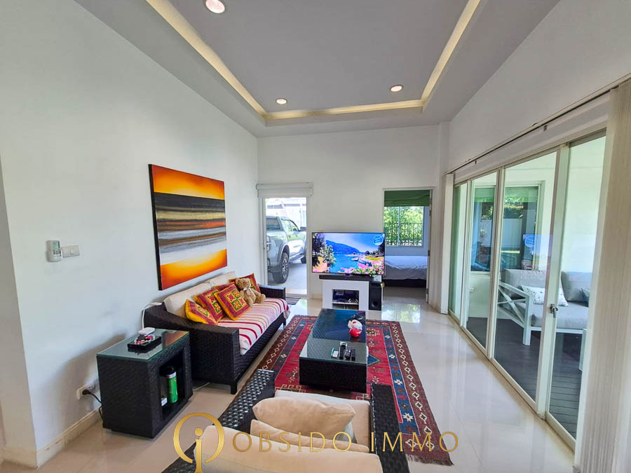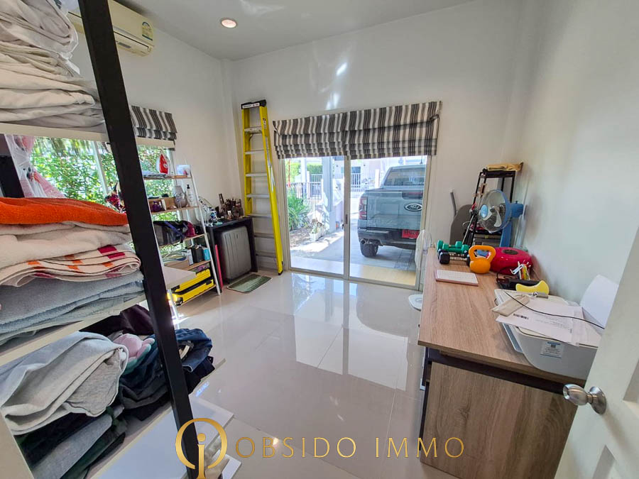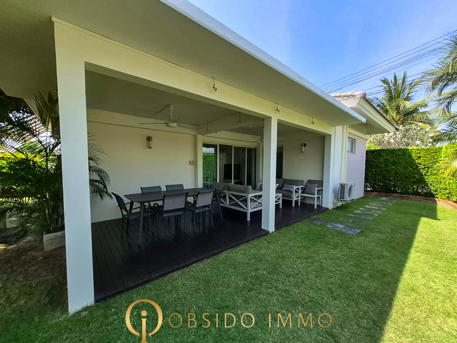 Dans l’un des quartiers résidentiels les plus recherchés de Hin Lek Fai, découvrez cette villa en angle, parfaitement au calme, avec un grand jardin qui fait le tour et très peu de vis-à-vis. Une vraie maison “famille / résidence secondaire”, prête à vivre, proposée à un prix imbattable : 3 800 000 THB (vente via société).