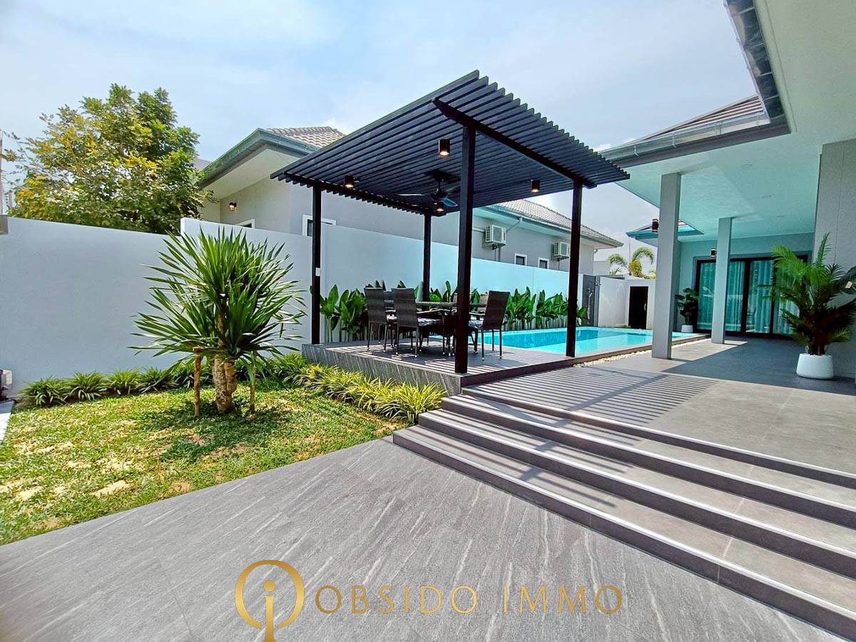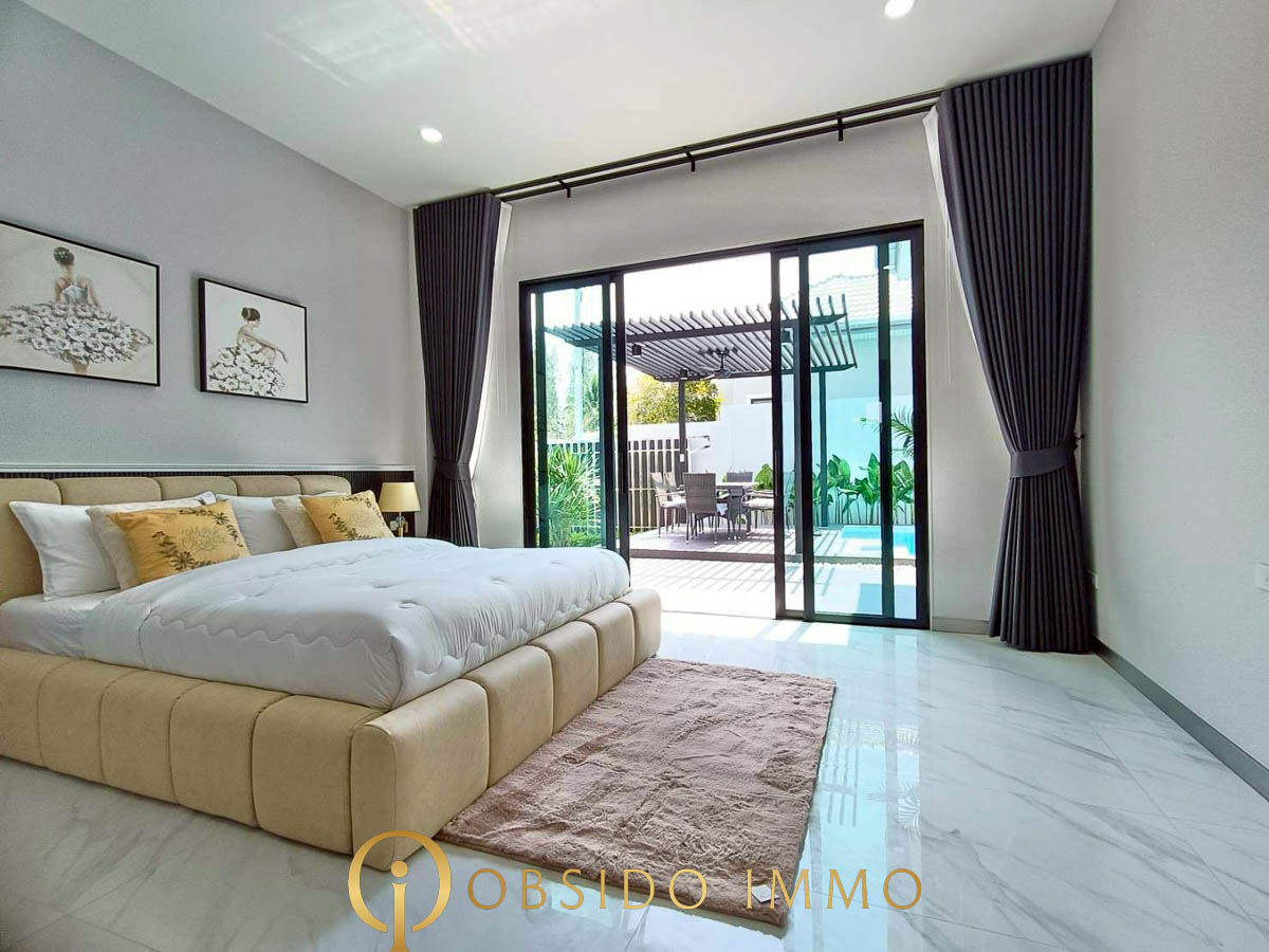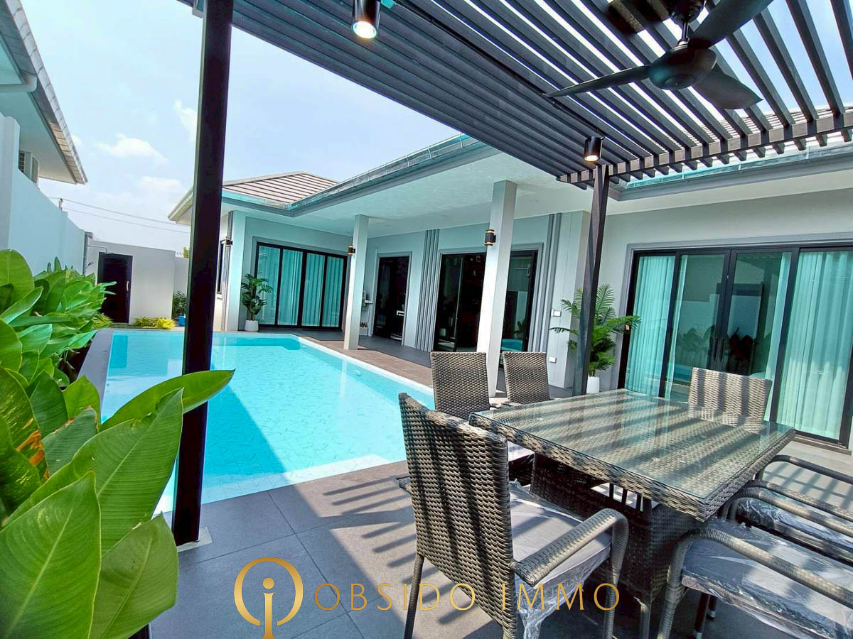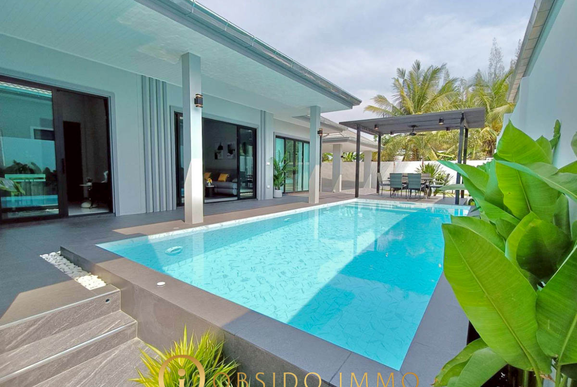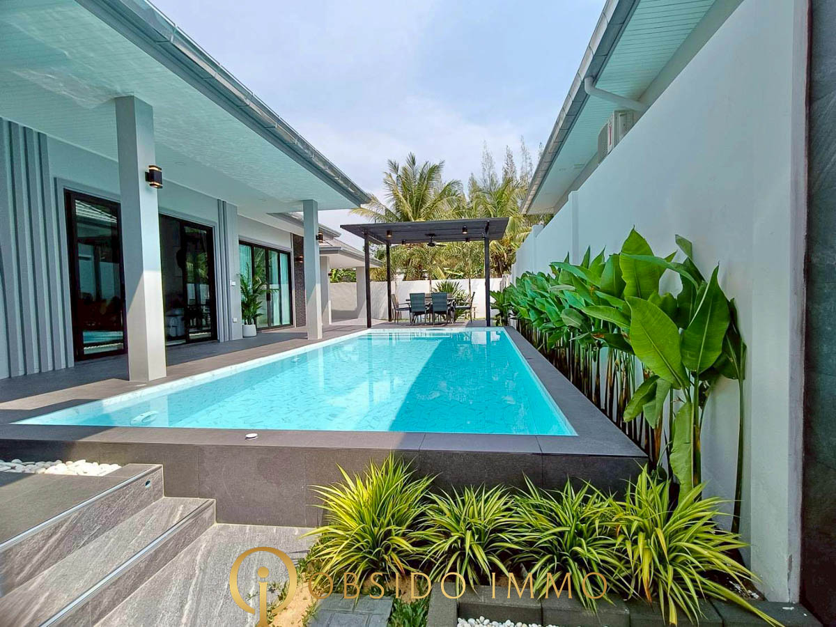 Dernière opportunité au sein du projet Phu Sky Villa Hua Hin, cette villa neuve au design moderne représente une excellente alternative pour un achat résidentiel ou un investissement à Hua Hin.