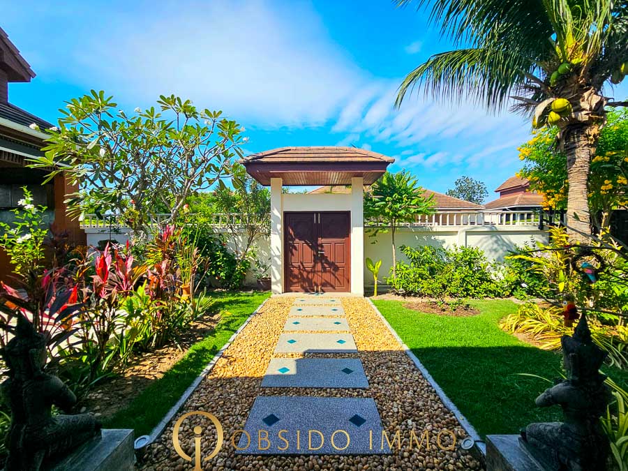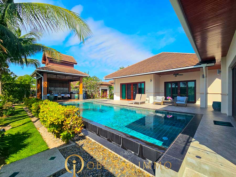 Située au sein du prestigieux projet Hillside Hamlet 6, cette superbe villa de style balinais offre un cadre de vie haut de gamme dans l’un des environnements résidentiels les plus recherchés de Hua Hin. Spacieuse, raffinée et entièrement équipée, elle combine élégance tropicale, confort moderne et très belles prestations.
