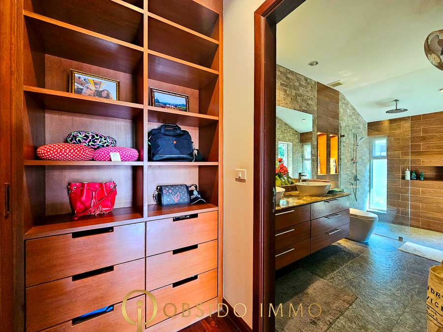 La villa propose une distribution très complète, avec de beaux volumes intérieurs et une vraie logique de vie tropicale tournée vers l’extérieur.