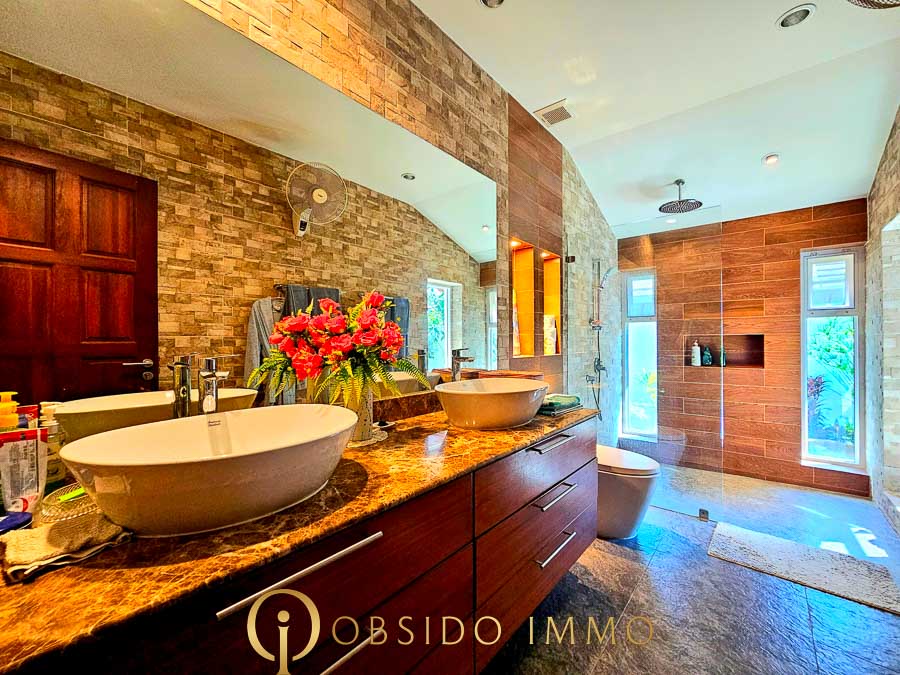 - 5 salles de bain dont master bathroom avec double jacuzzi et WC japonais