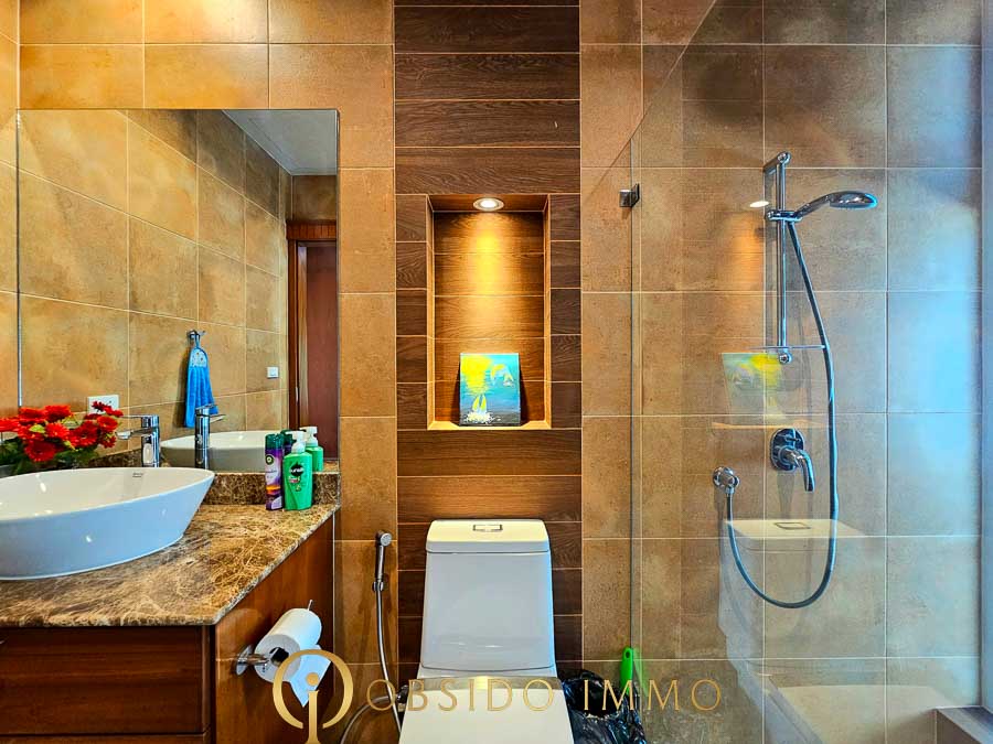 Proposée aujourd’hui à 17 900 000 THB, en baisse par rapport à son ancien prix de 18 400 000 THB, cette propriété représente une opportunité rare dans l’un des projets les plus cotés de Hua Hin.