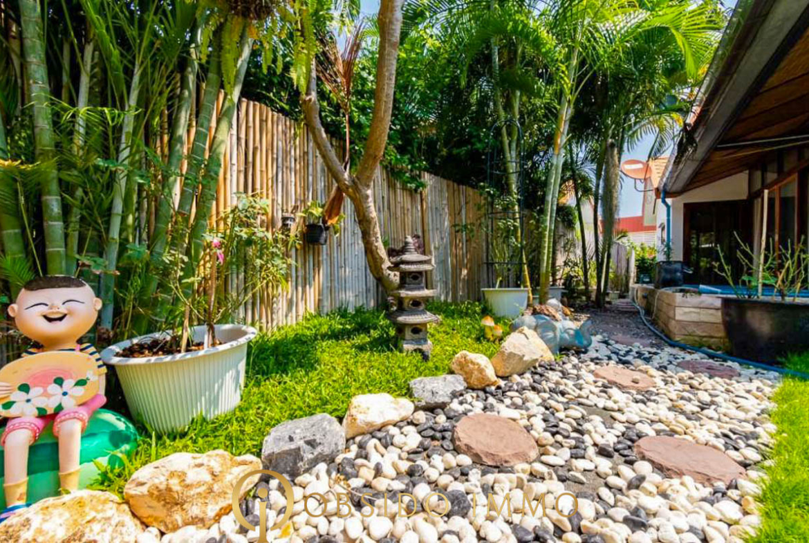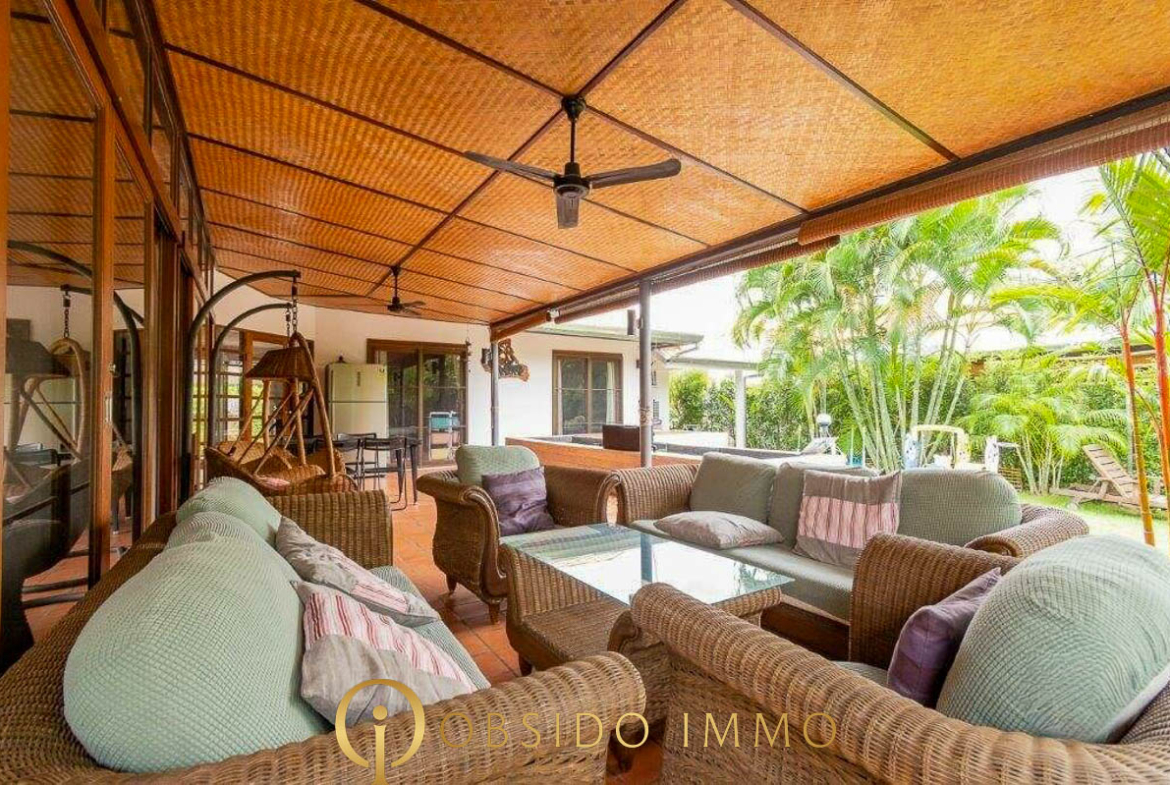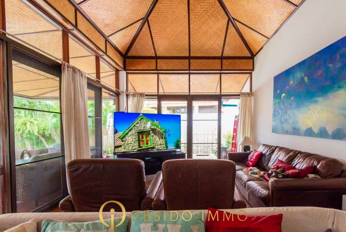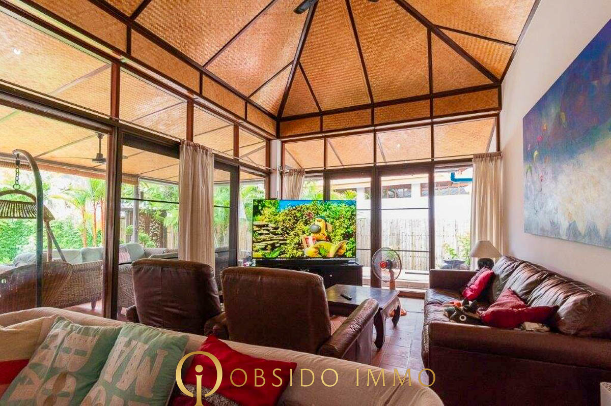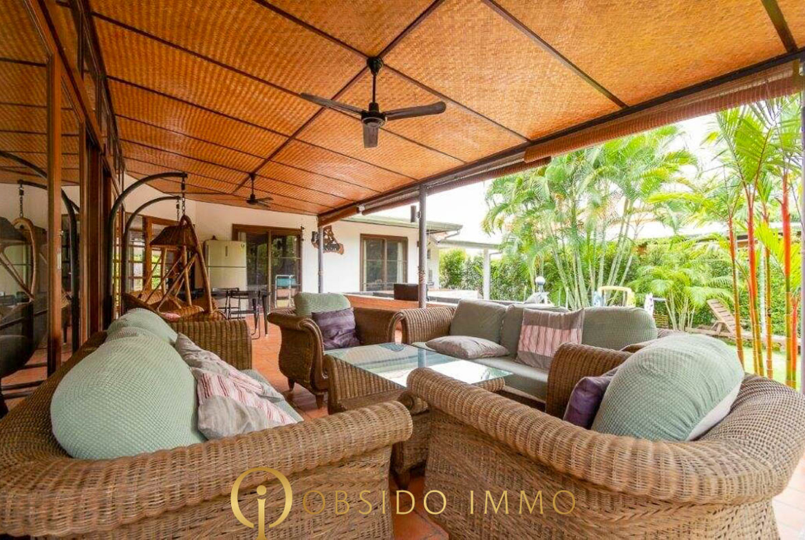 Située au sein de la résidence sécurisée Villa Vista, dans un environnement paisible entre collines et plages, cette villa de style balinais entièrement rénovée offre un cadre de vie tropical à la fois élégant et fonctionnel.