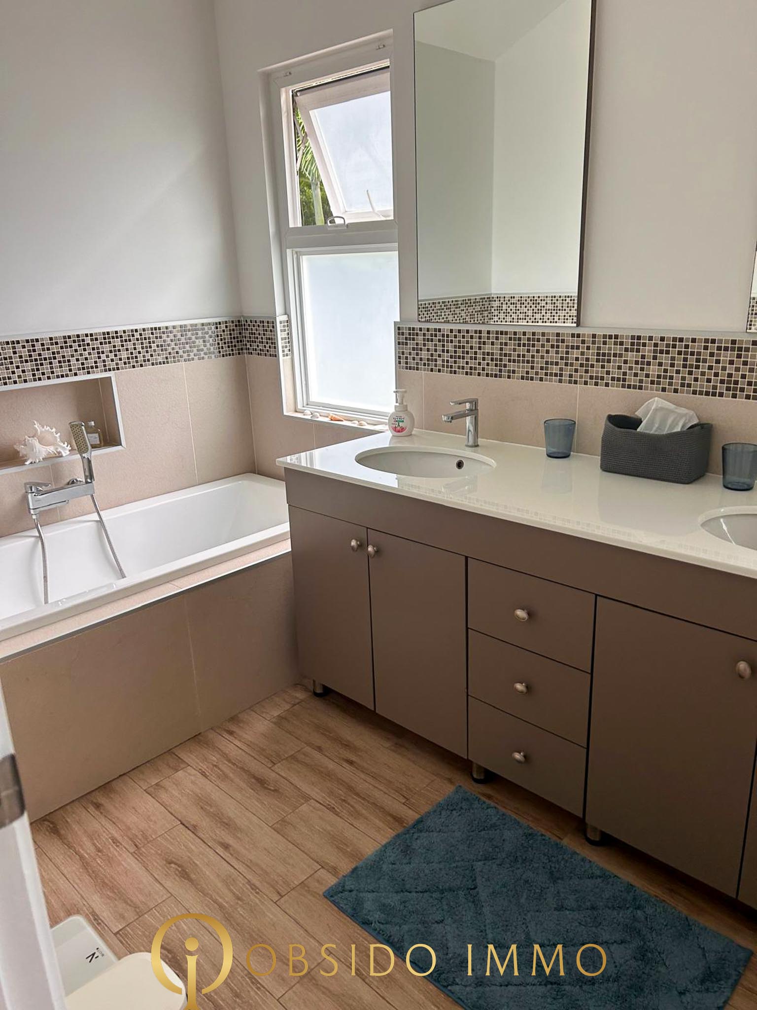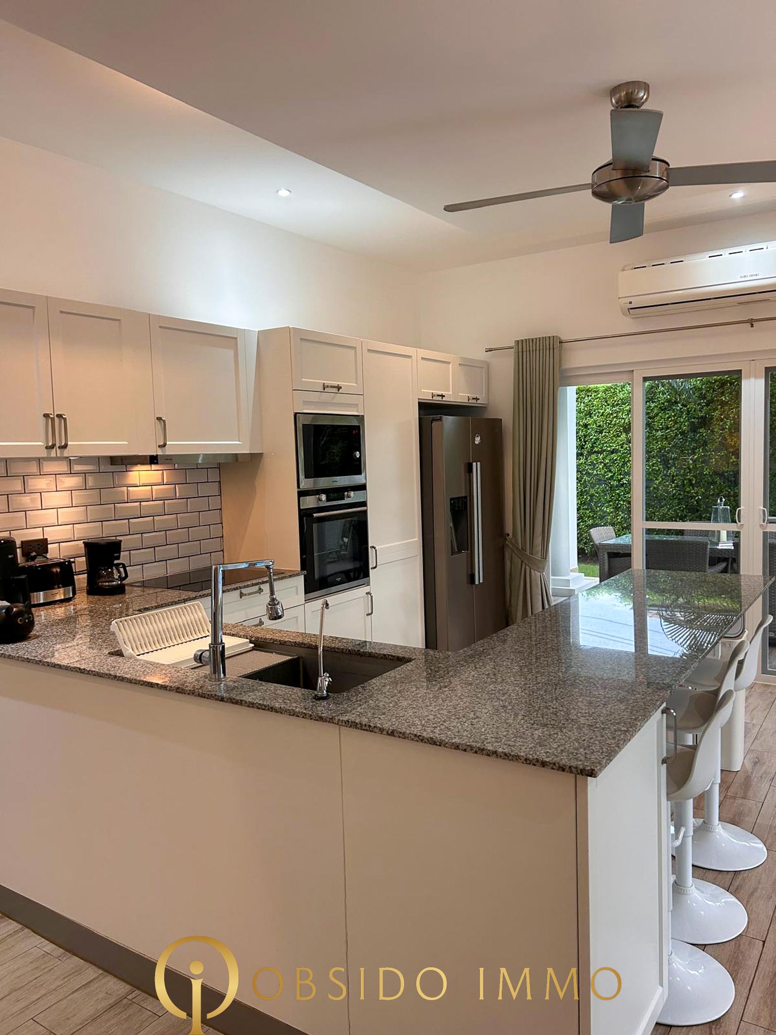 Elle dispose d’un salon spacieux, d’une cuisine moderne entièrement équipée, d’un jardin privatif et d’une piscine, pour des moments de détente en toute intimité. Chaque chambre est climatisée et dotée d’espaces de rangement généreux.