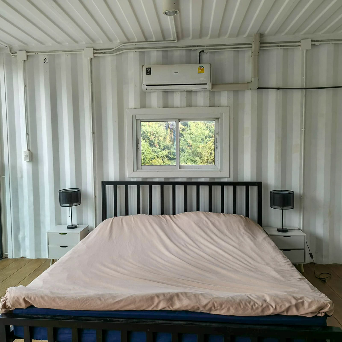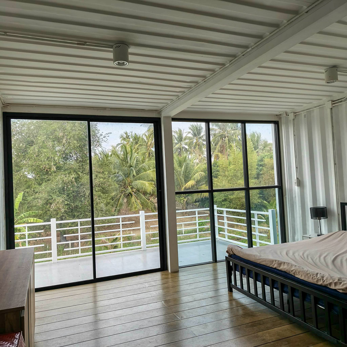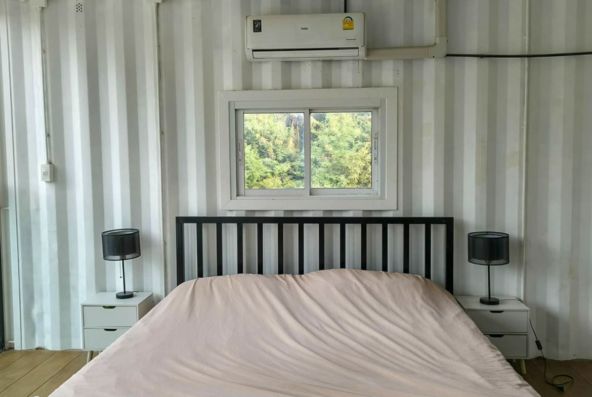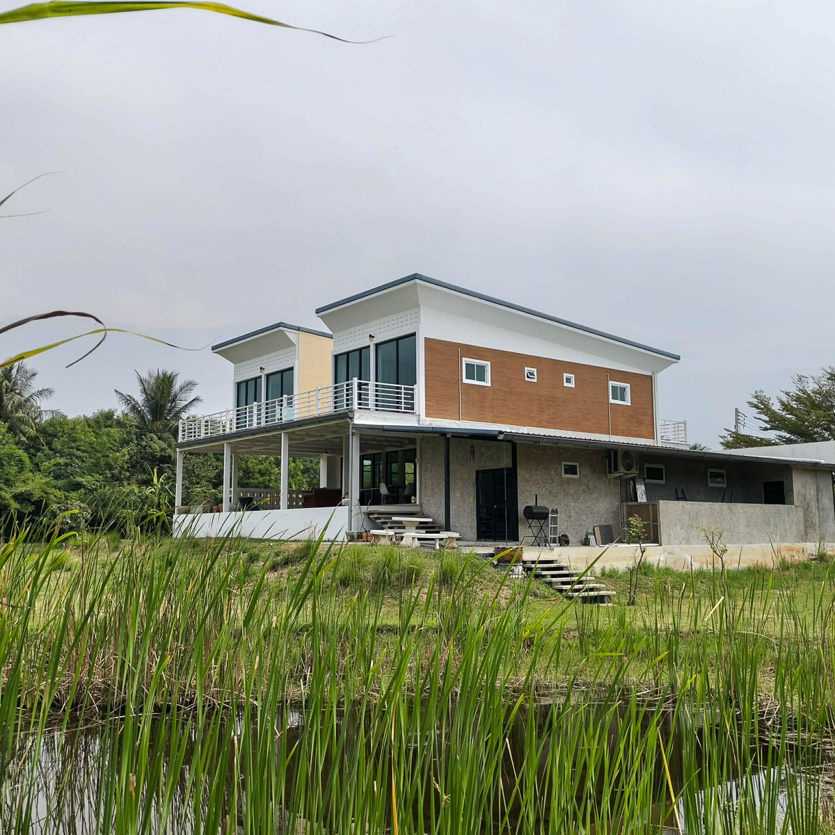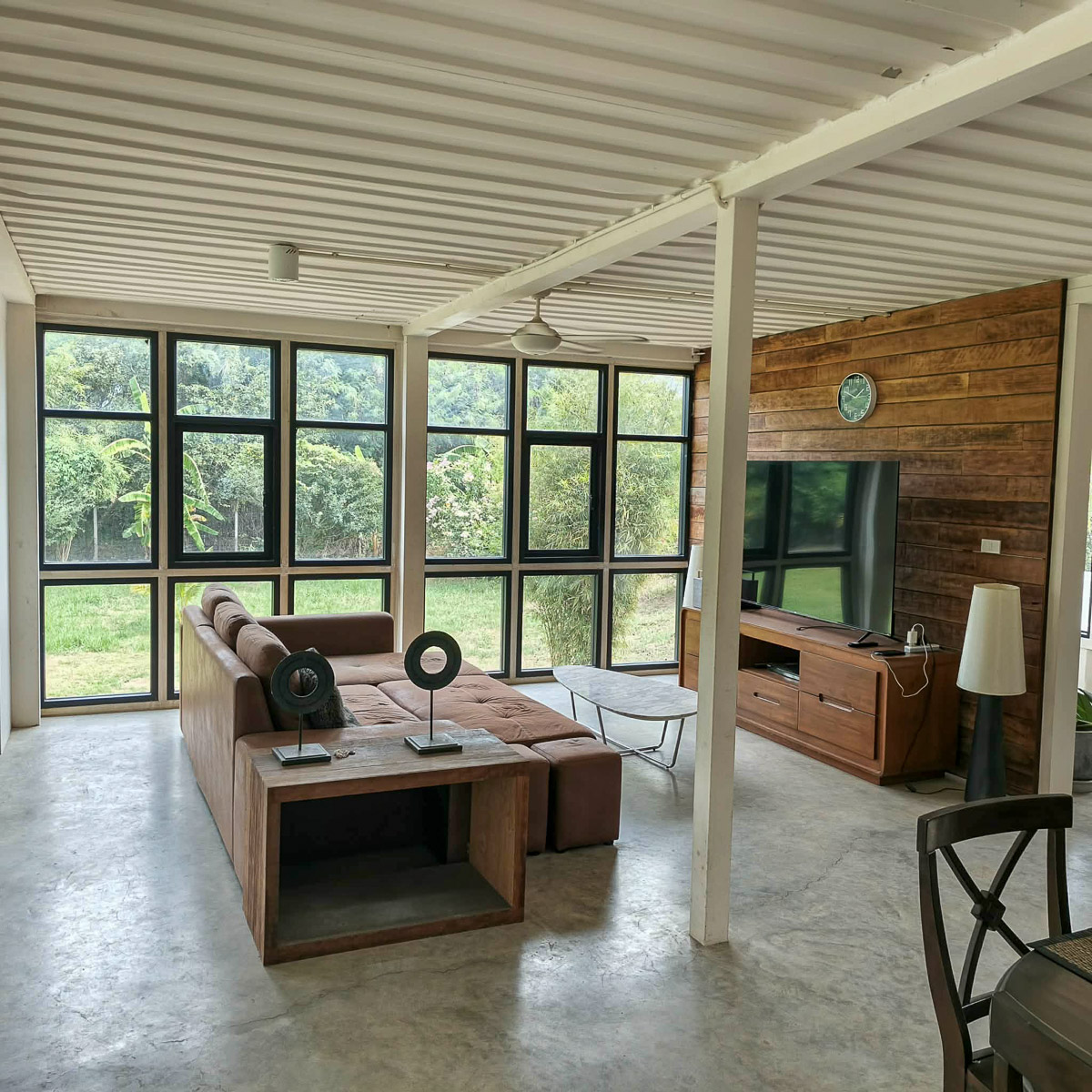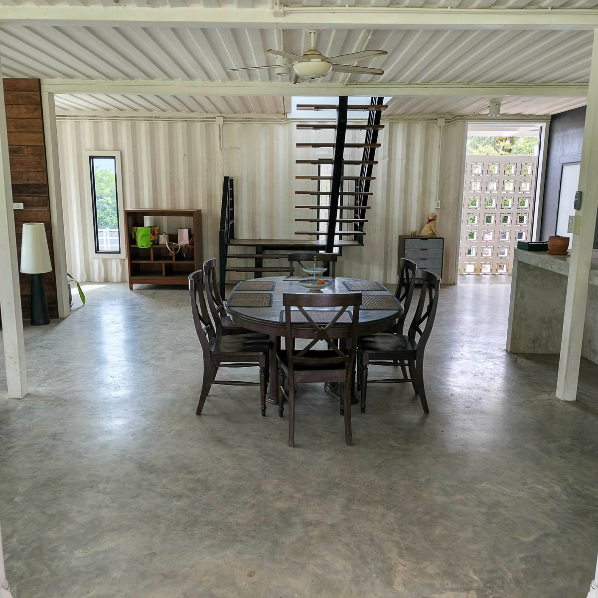 Située dans la campagne paisible de Pranburi, au sud de Hua Hin, cette villa construite à partir de conteneurs revisités propose un concept architectural unique mêlant style loft industriel et environnement tropical.
