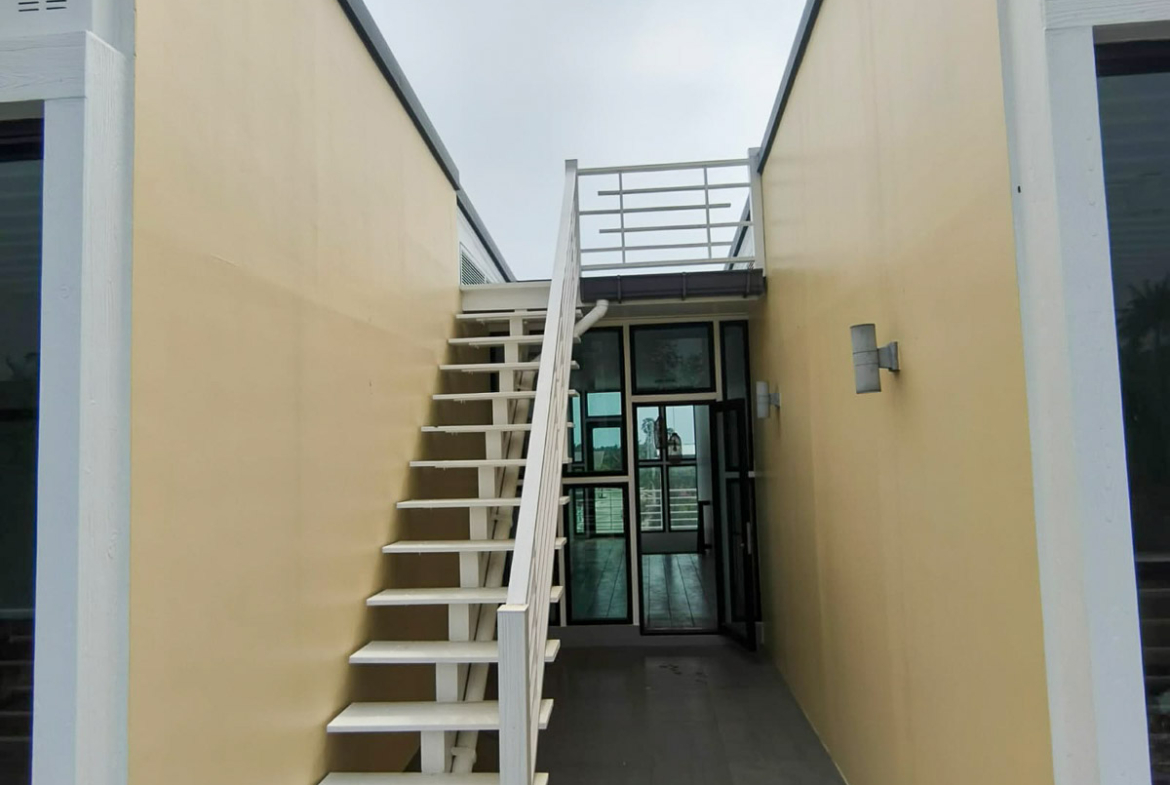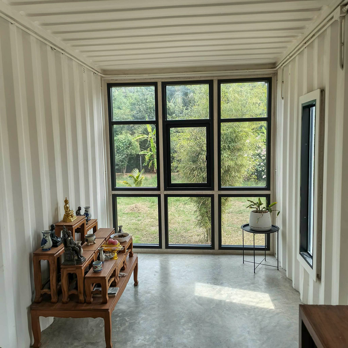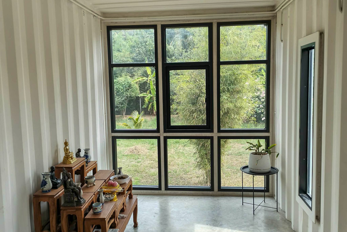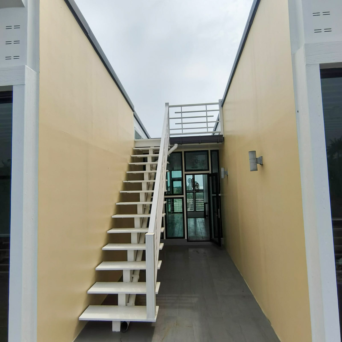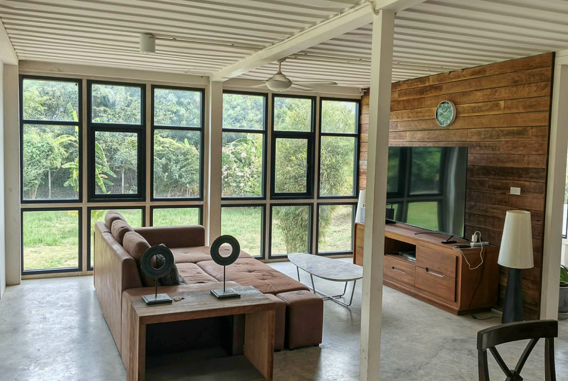 Située dans la campagne paisible de Pranburi, au sud de Hua Hin, cette villa construite à partir de conteneurs revisités propose un concept architectural unique mêlant style loft industriel et environnement tropical.