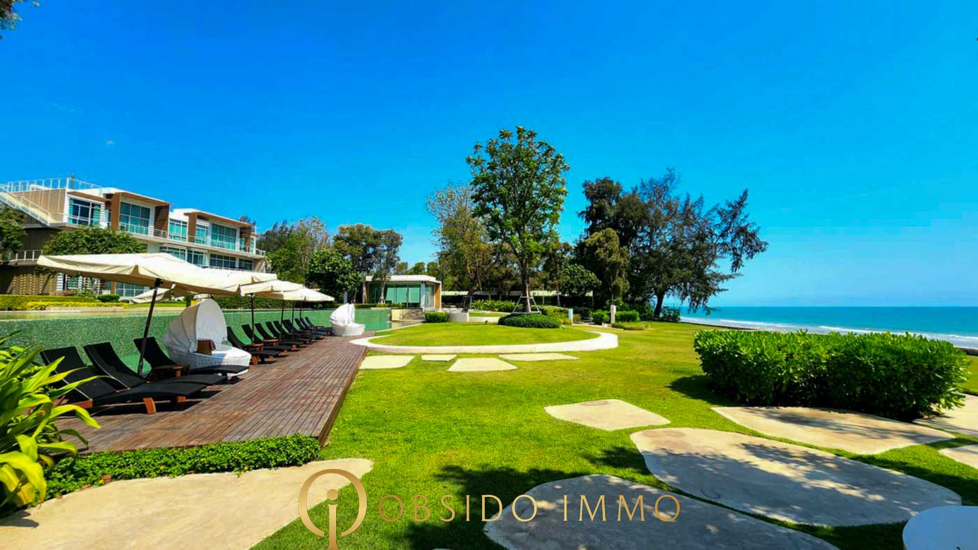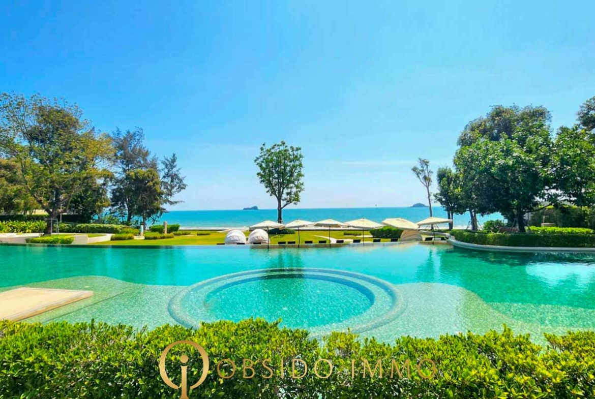 Proposé au prix de 16 960 000 THB, cet appartement entièrement meublé représente une opportunité rare sur le segment des biens en front de mer à Hua Hin.